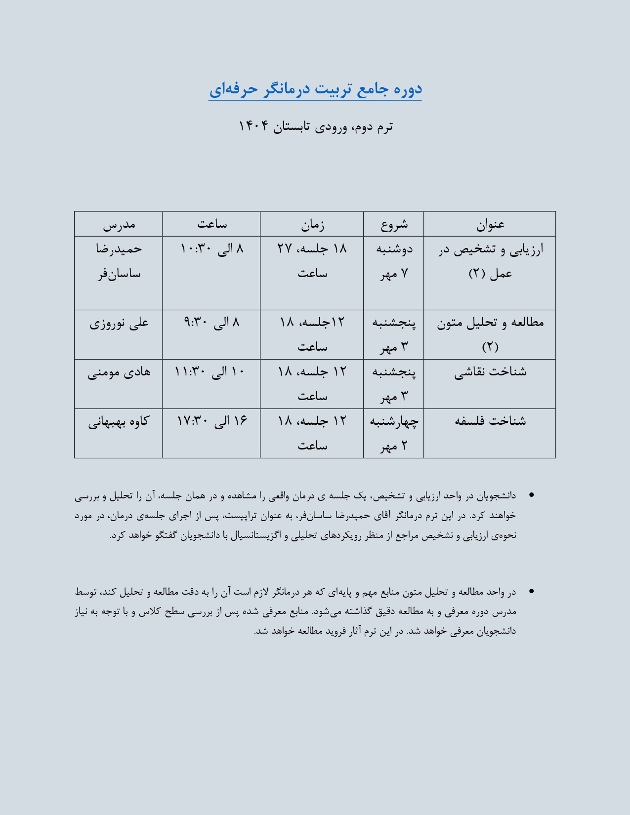 برنامه ترم دوم، ورودی تابستان ۴۰۴