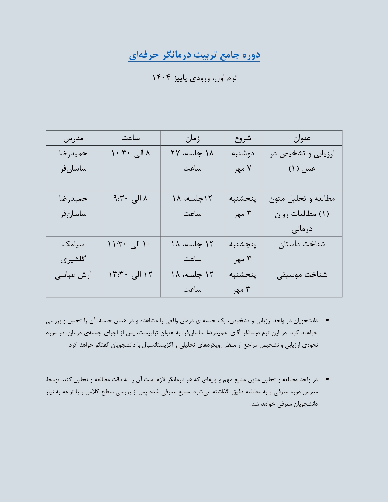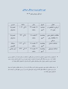 برنامه ترم اول، ورودی پاییز ۴۰۴